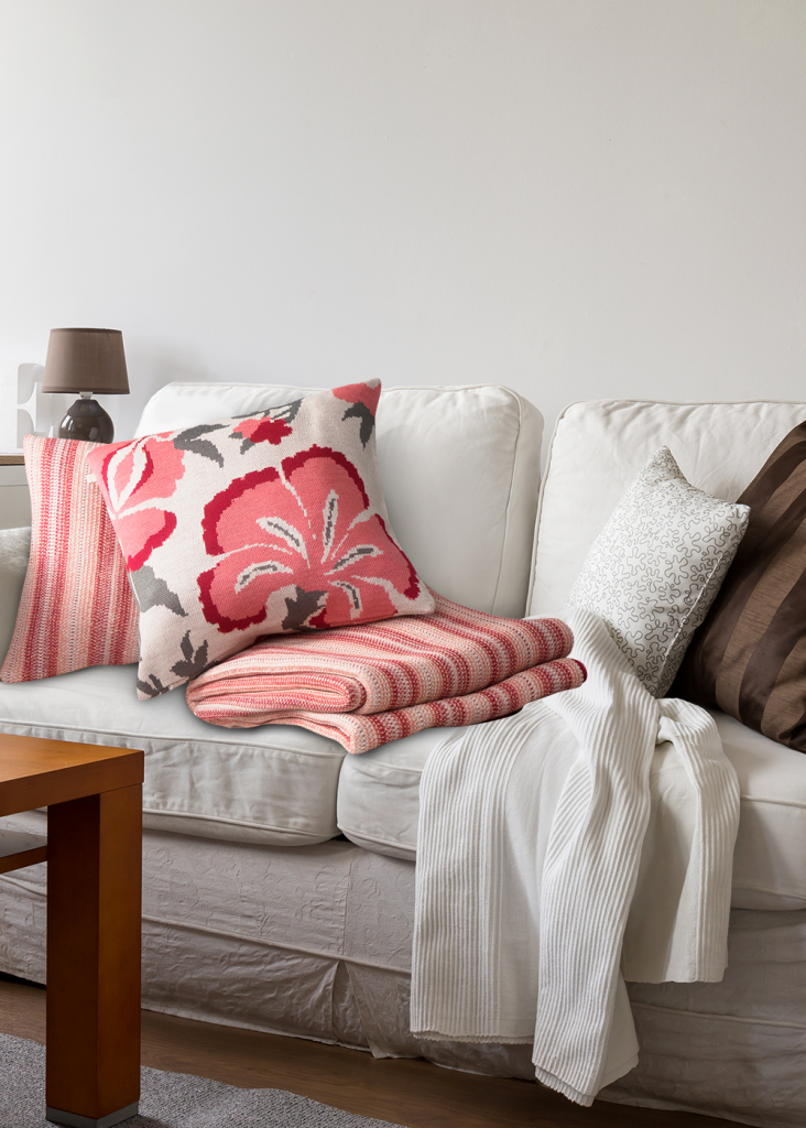 Вязаная наволочка с тематическим жаккардовым рисунком дополнена нитью люрекса, с потайной молнией, декорирована имиджевой нашивкой