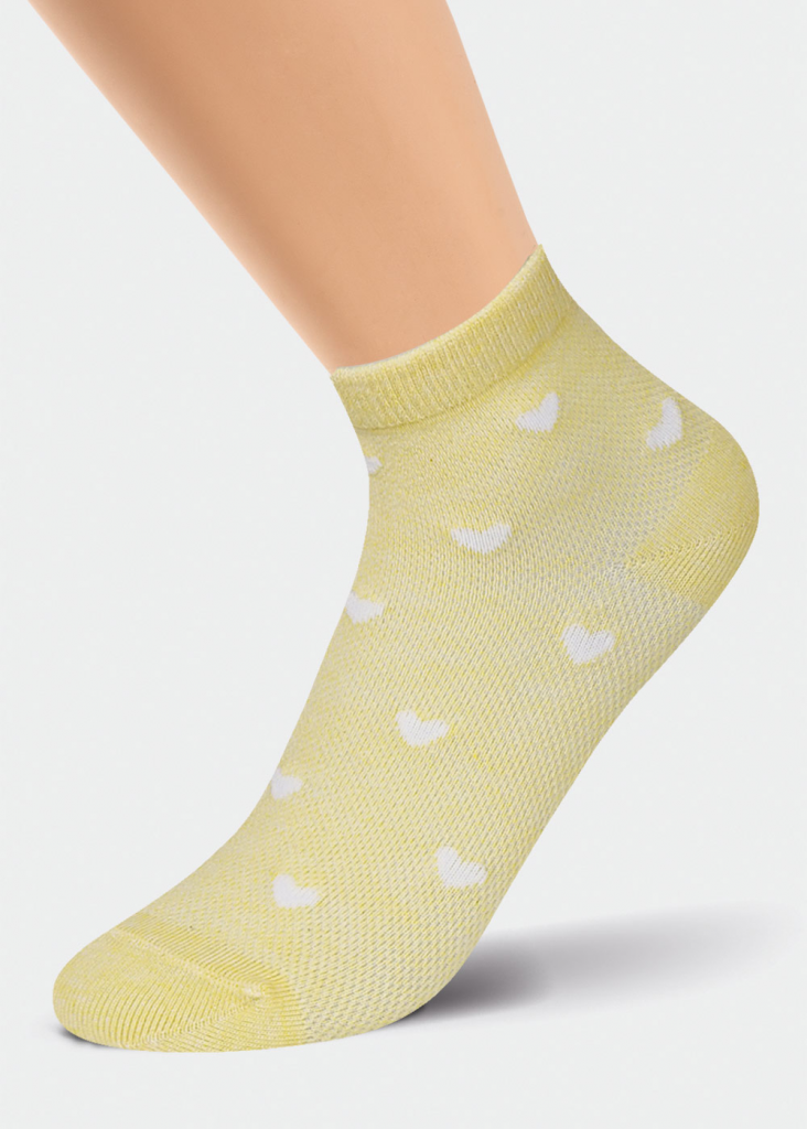 облегченные носки для девочки выполненные плетением"сетка" с набивным рисунком сердечки