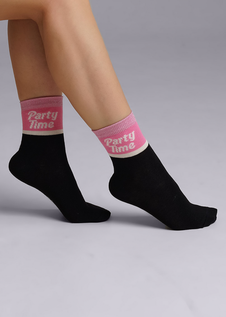 стильные носки для девочки с надписью "время вечеринки" , резинка украшена люрексной нитью