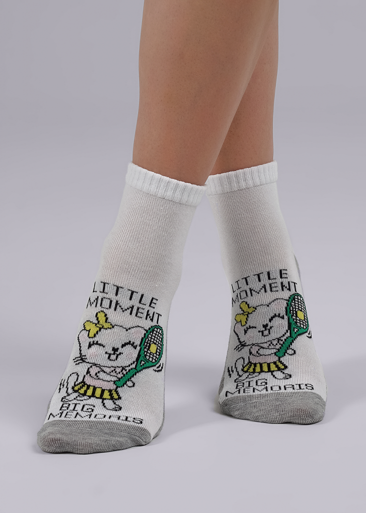 CLE Носки дет.С1428 16-18,18-20 пинг-понг хл+эл, белый/меланж серый