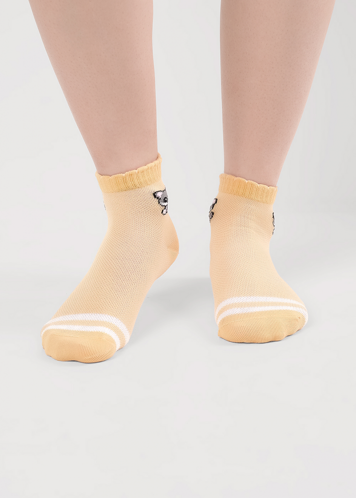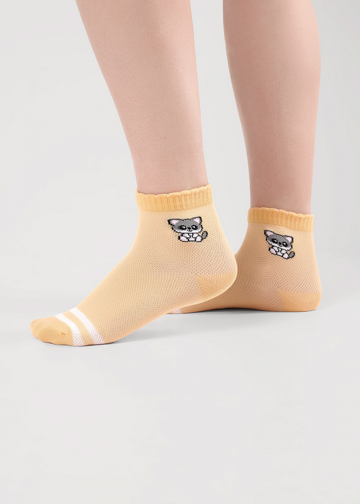 облегченные носки плетение сетка для девочки с рисунком кошки на паголенке