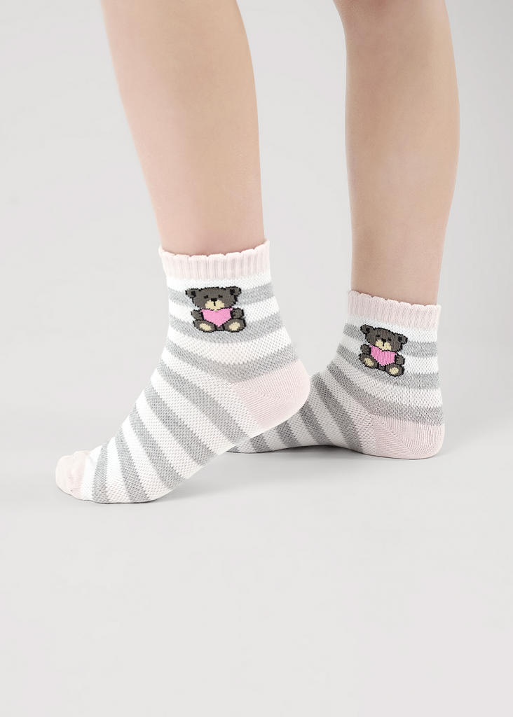 облегченные носки плетение сетка для девочки в полоску с рисунком мишки на паголенке