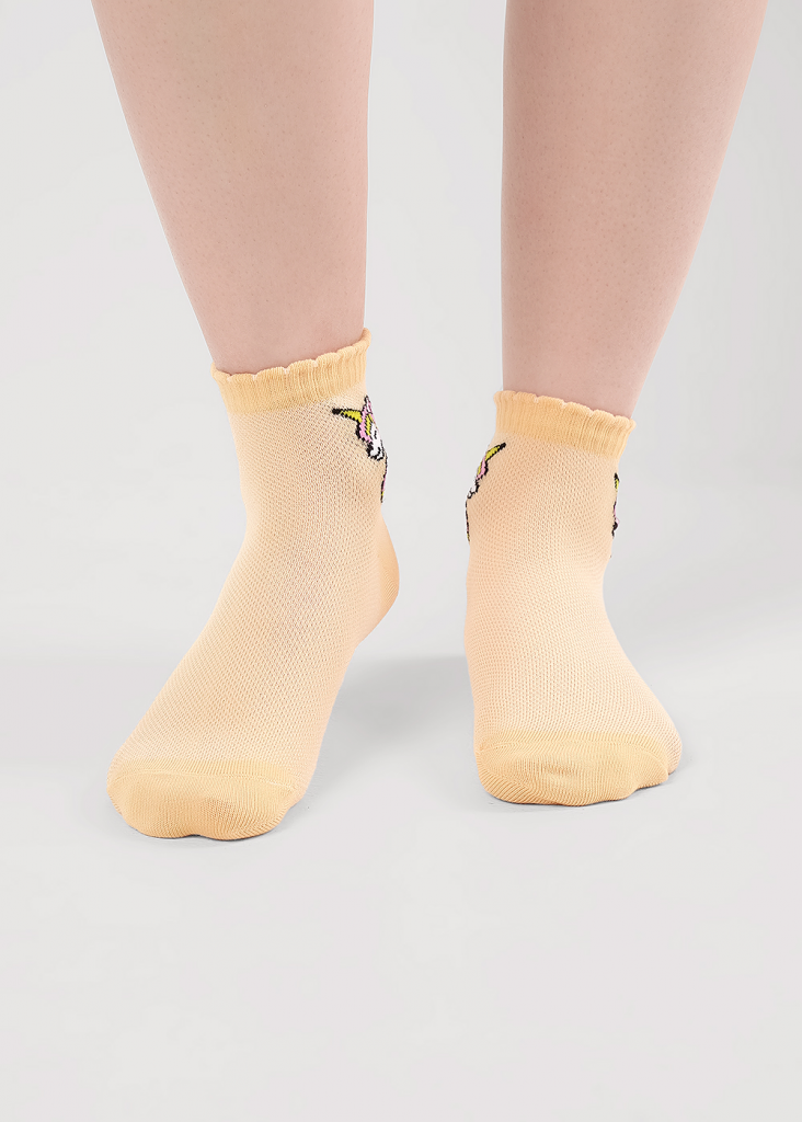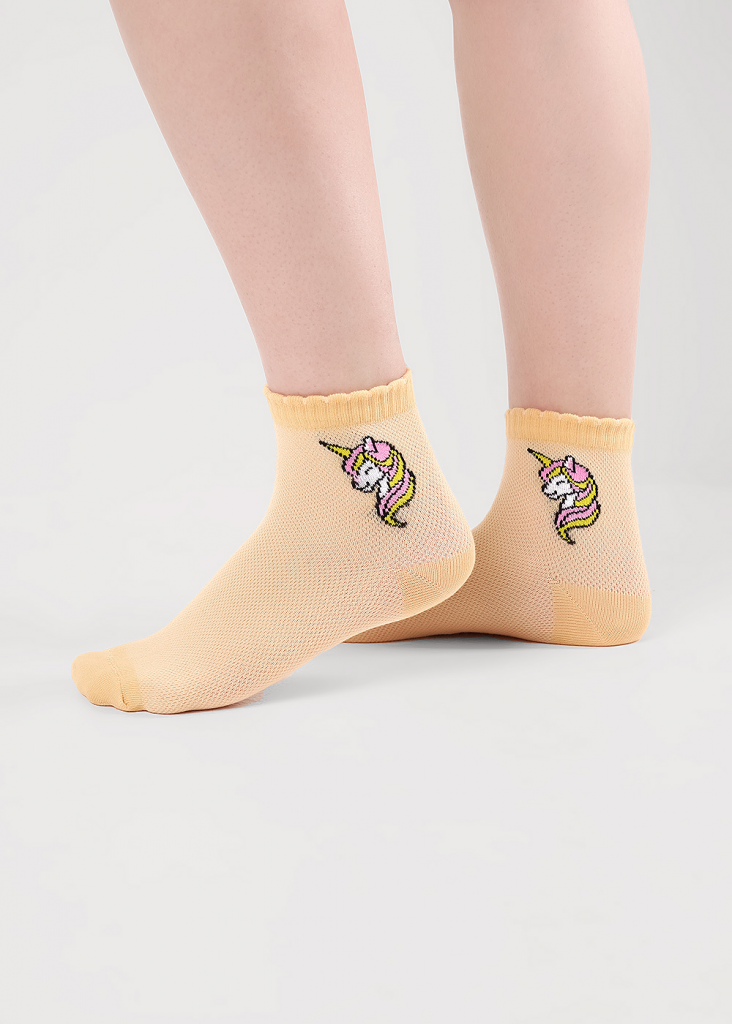 облегченные носки плетение сетка для девочки с рисунком единорога на паголенке