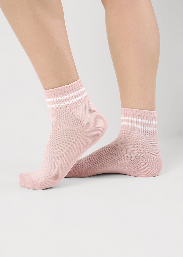 облегченные носки плетение сетка для девочки с полосками на паголенке