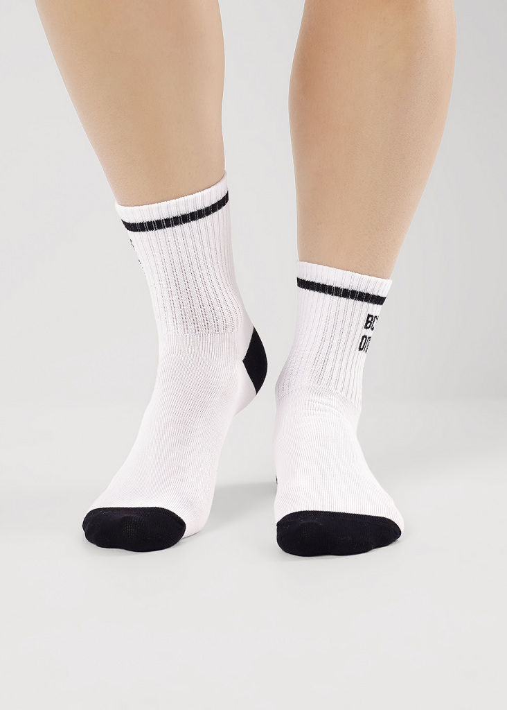Носки для мальчика и девочки с выделенным мысом и пяткой с надписью на паголенке В смысле опоздал?