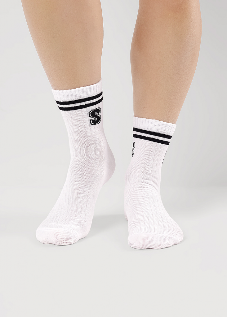Носки для девочки в лапшу с полосками на паголенке и буквой S