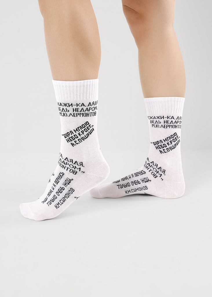 Носки для девочки и мальчика с фразами из стихов русских писателей