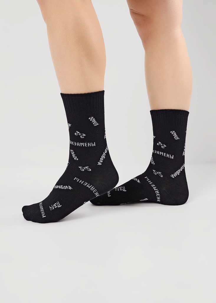 CLE Носки дет.С15810 18-20 школа хл+эл, чёрный