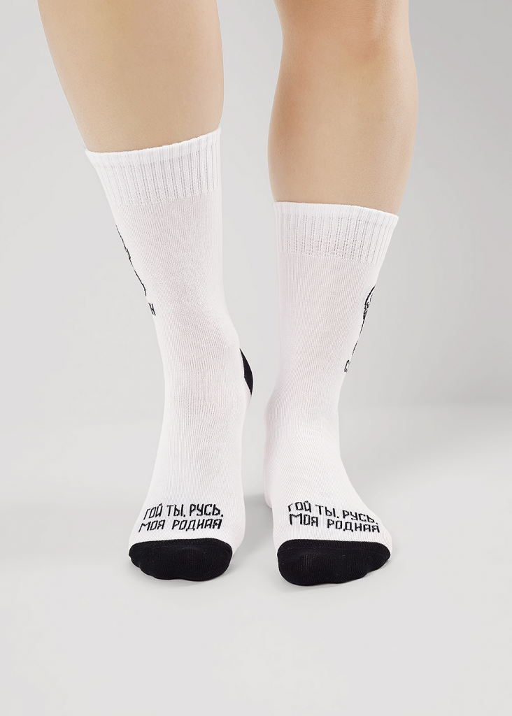 Носки для мальчика и девочки с выделенным мысом и пяткой, с изображением С.А.Есенина и надписью Гой ты Русь моя родная
