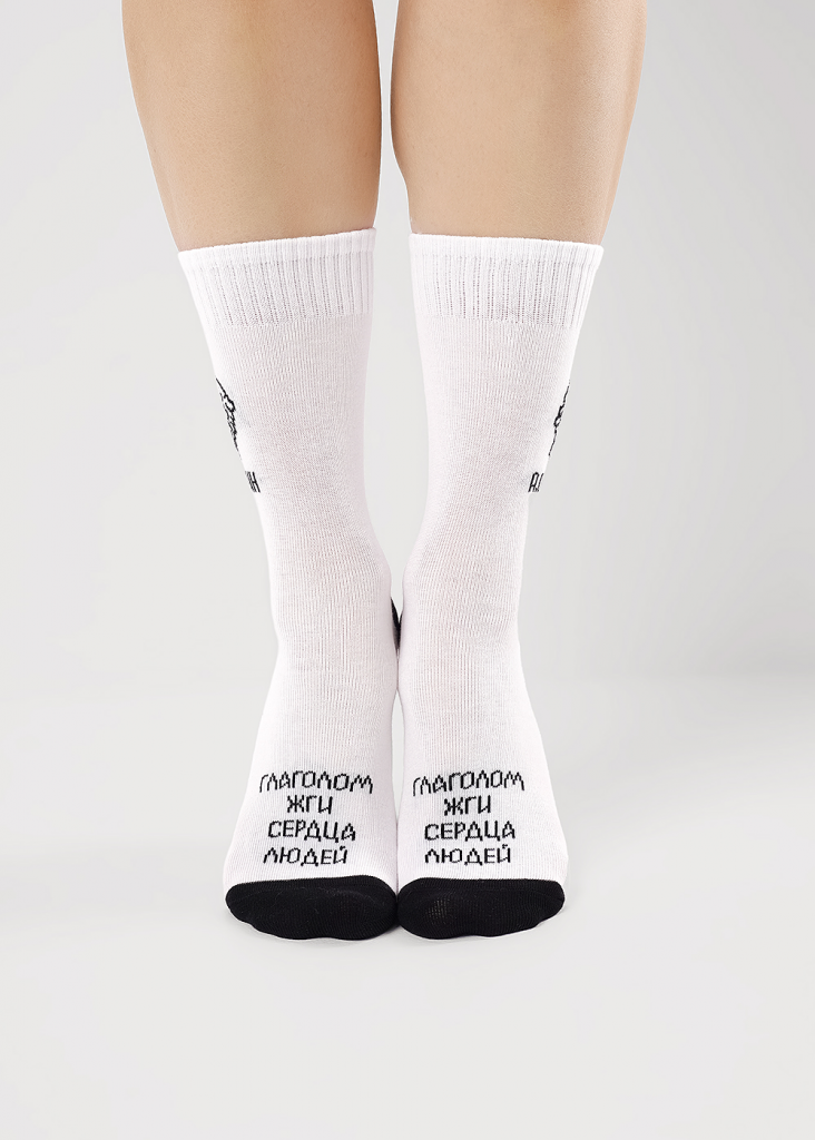 Носки для мальчика и девочки с выделенным мысом и пяткой с изображением А.С.Пушкина и надписью Глаголом жги сердца людей