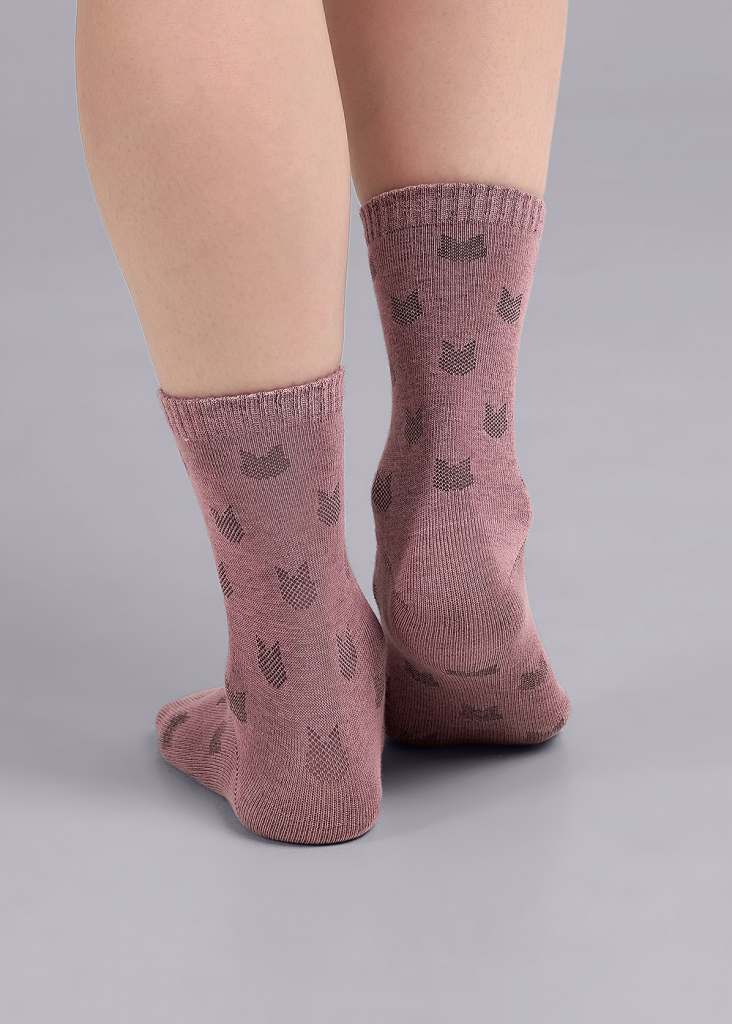 носки для девочки с вывязанным рисунком кошки( безниточная технология)
