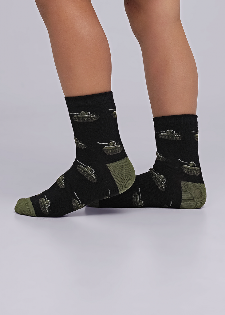 Носки для мальчика с выделенными мыском и пяткой и рисунком танки