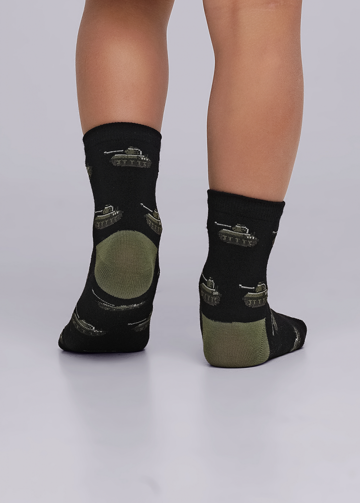 Носки для мальчика с выделенными мыском и пяткой и рисунком танки