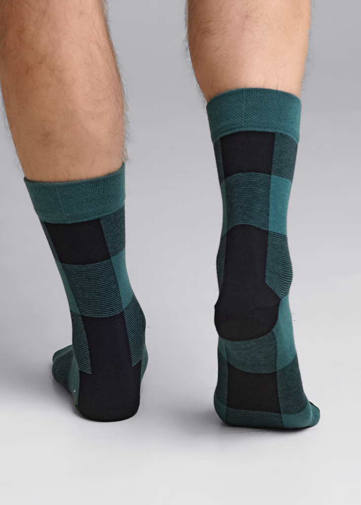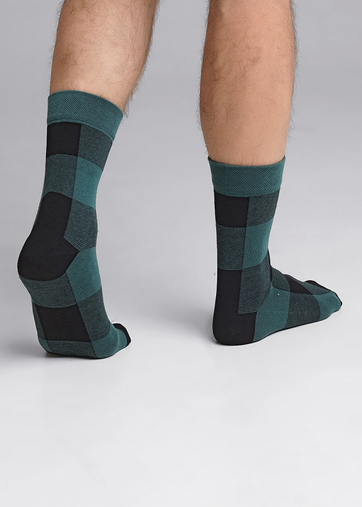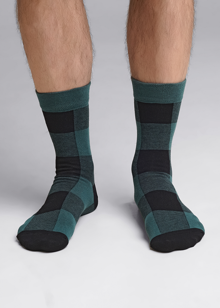 Новогодние мужские носки (гладь) рисунок Клетка
