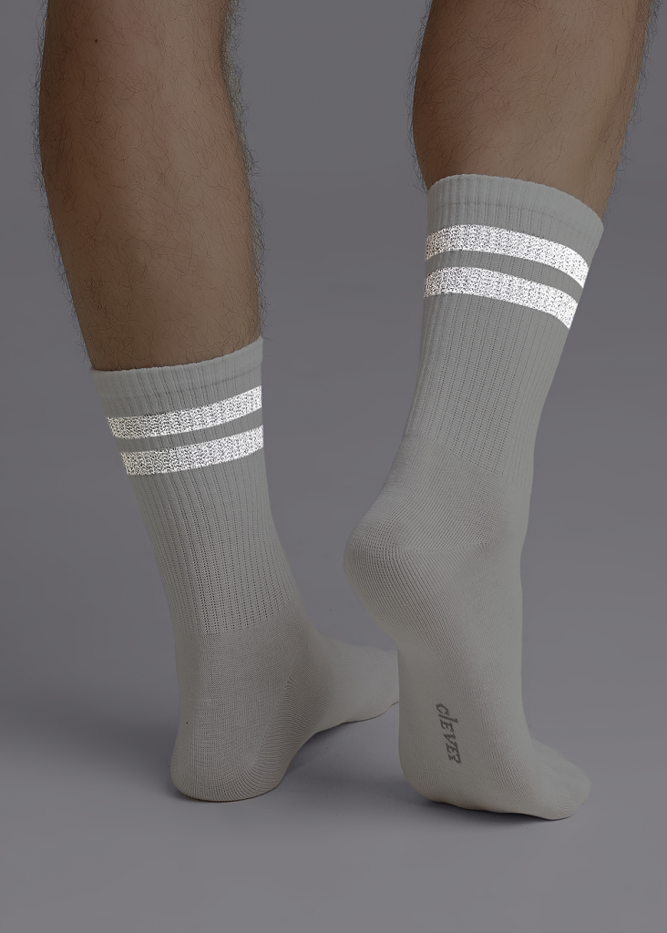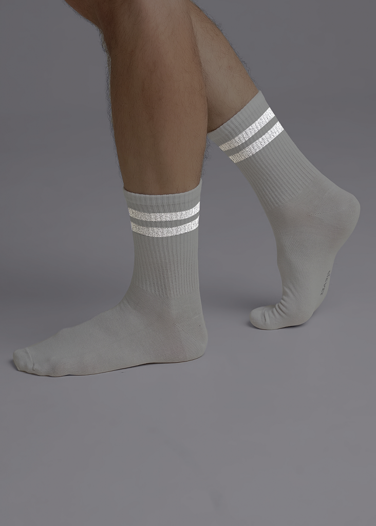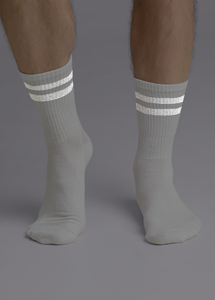 Стильный мужской носок со светоотражающими элементами.Полоски на паголенке из светоотражающей нити