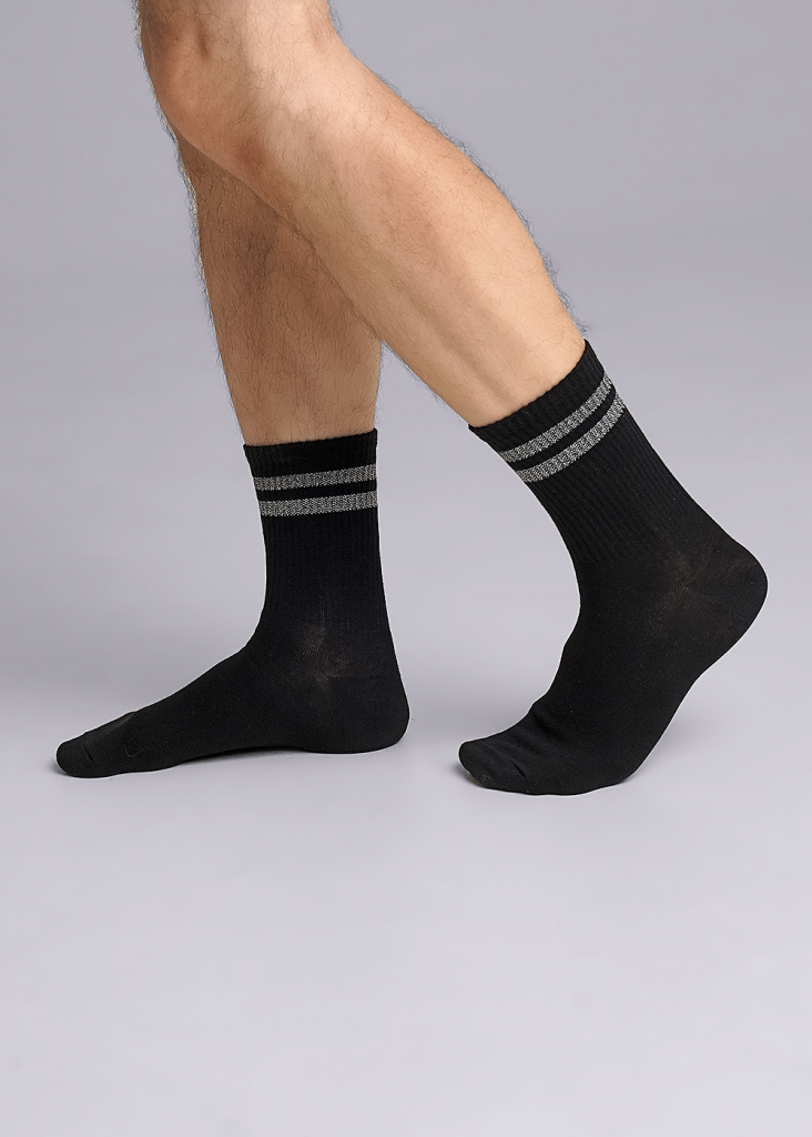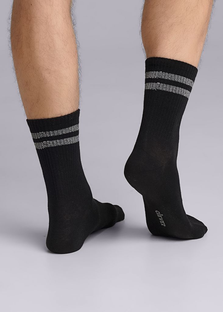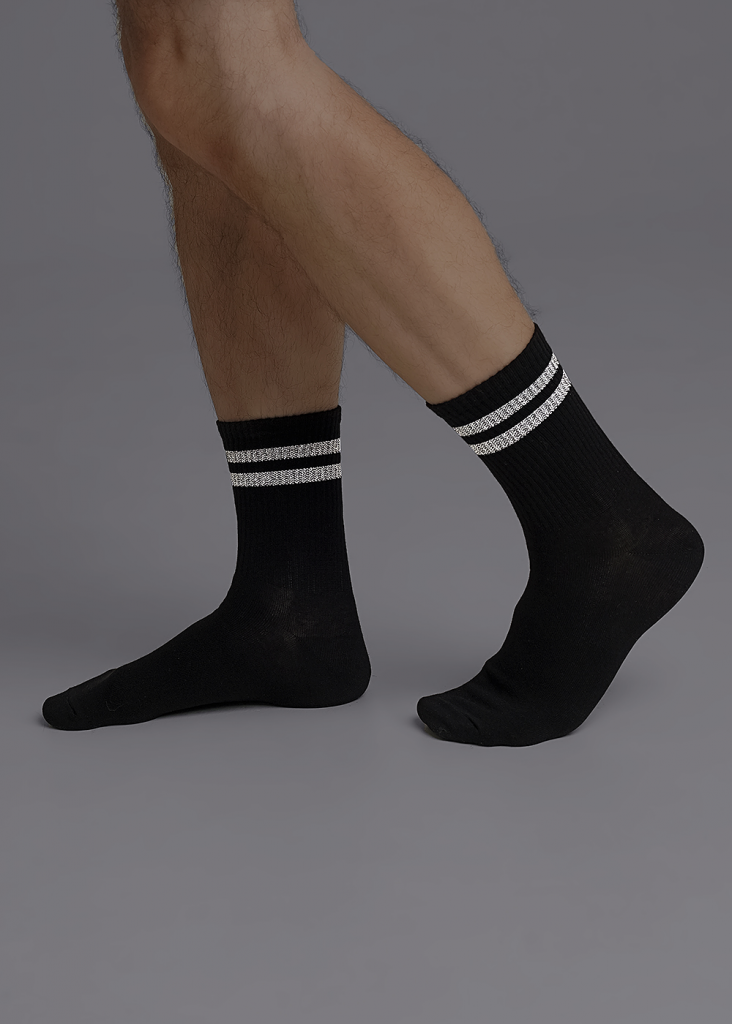 Стильный мужской носок со светоотражающими элементами.Полоски на паголенке из светоотражающей нити