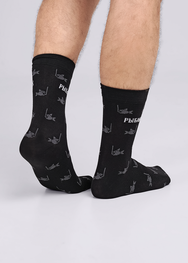 Мужские носки с рисунком рыбки и надписью Рыбак