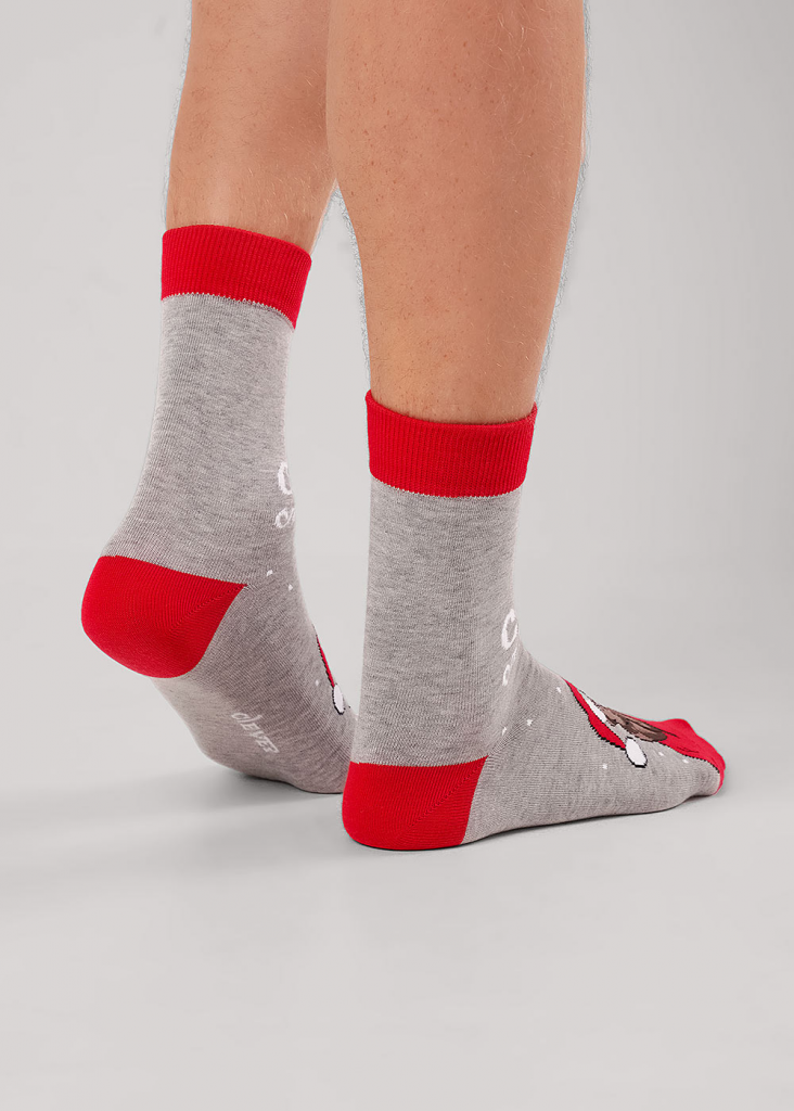 носки мужские с выделенным мыском, пяткой, бортом, с рисунком медведя и надписью с новым счастьем