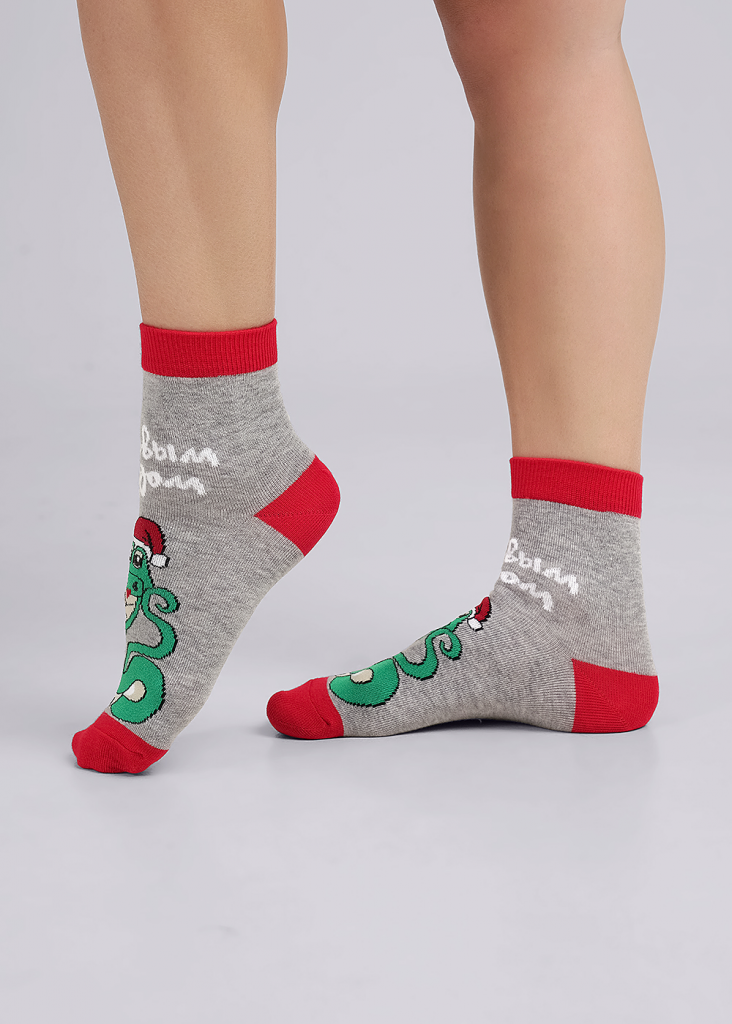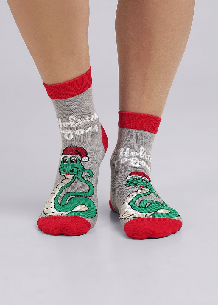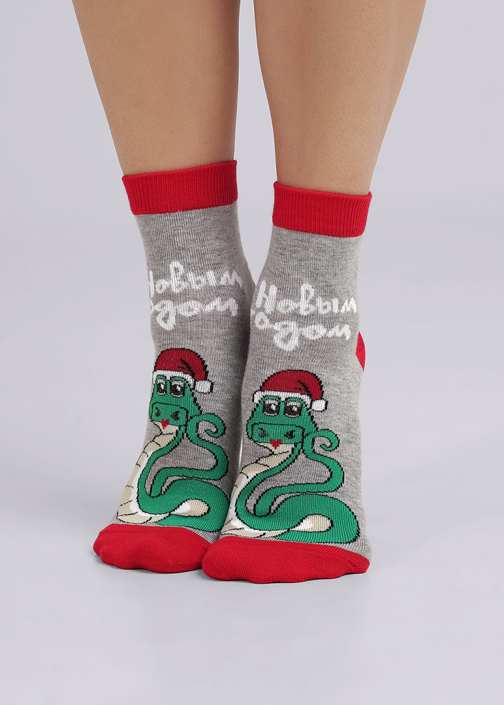 женские новогодние носки с рисунком змея и надписью с новым годом