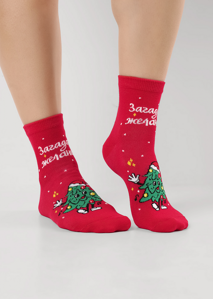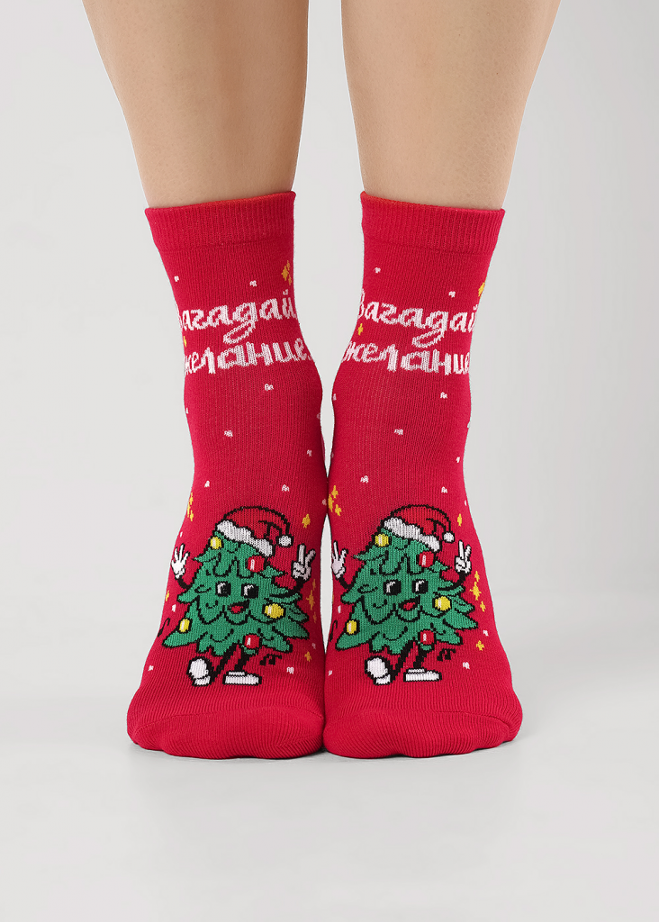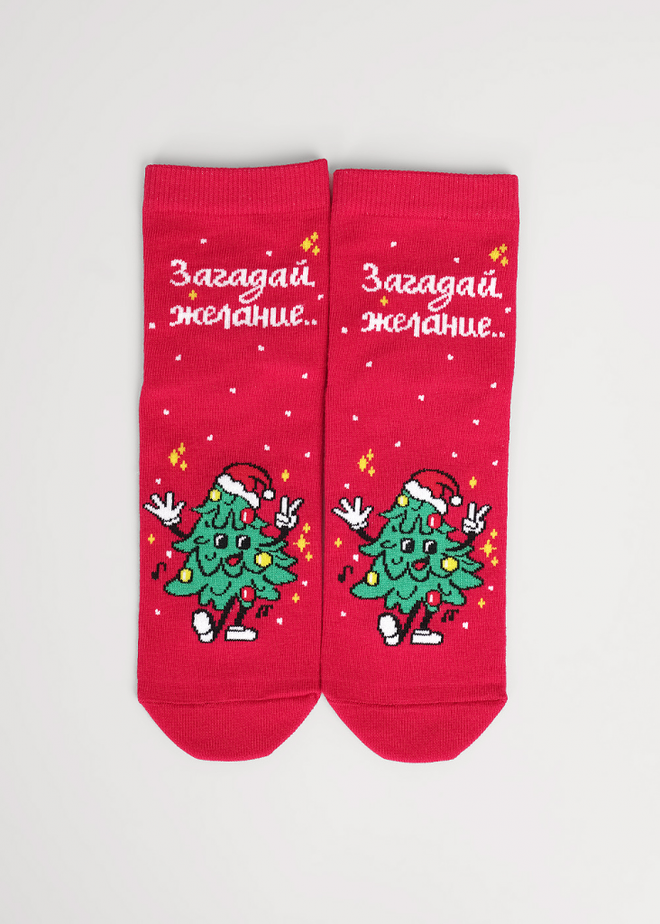 Носки женские с рисунком "Весёлая ёлочка" и надписью "Загадай желание"