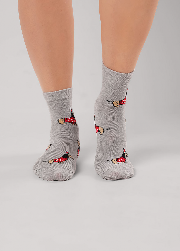 CLE Носки жен.Д2563 НГ хл+эл, меланж серый