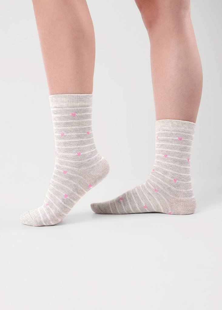 CLE Носки жен.Д5569 игровые хл+эл, меланж св.серый