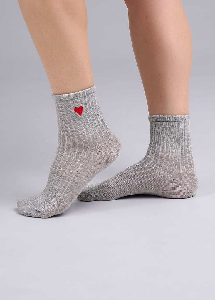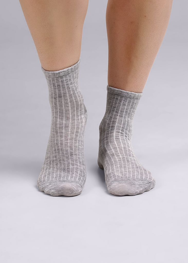 CLE Носки жен.Д648 хл+эл вышив, меланж серый