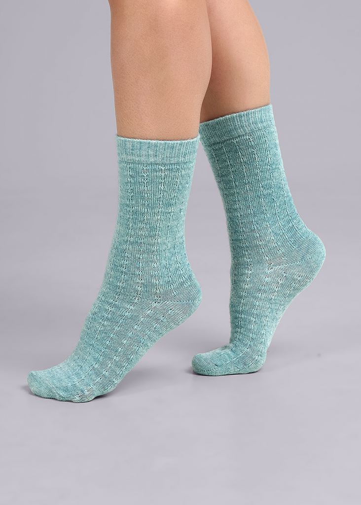 CLE Носки жен.Д667Ш шерсть пан+шерсть, меланж св.бирюзовый