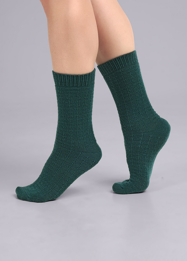 CLE Носки жен.Д667Ш шерсть пан+шерсть, т.зелёный