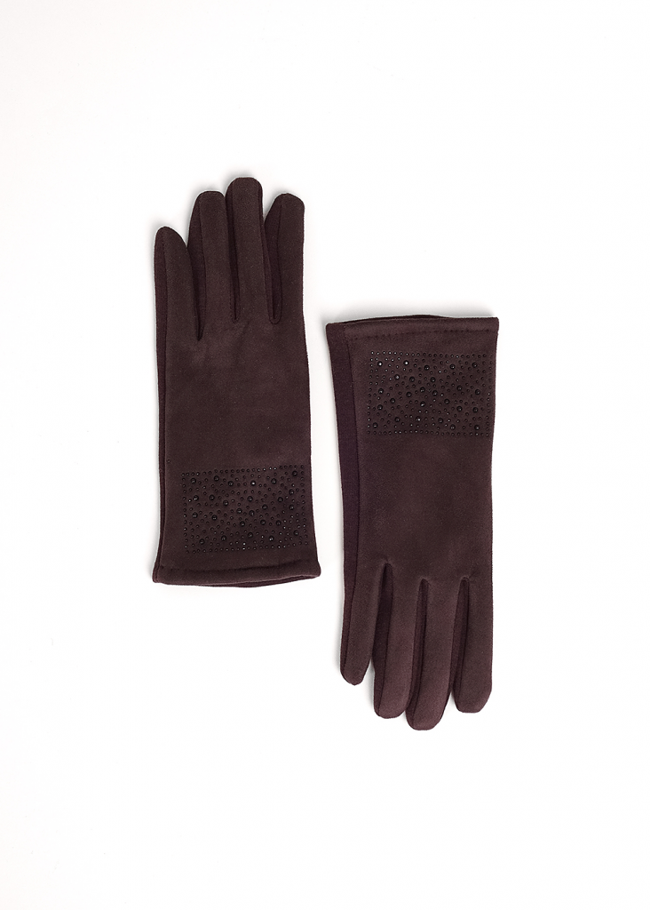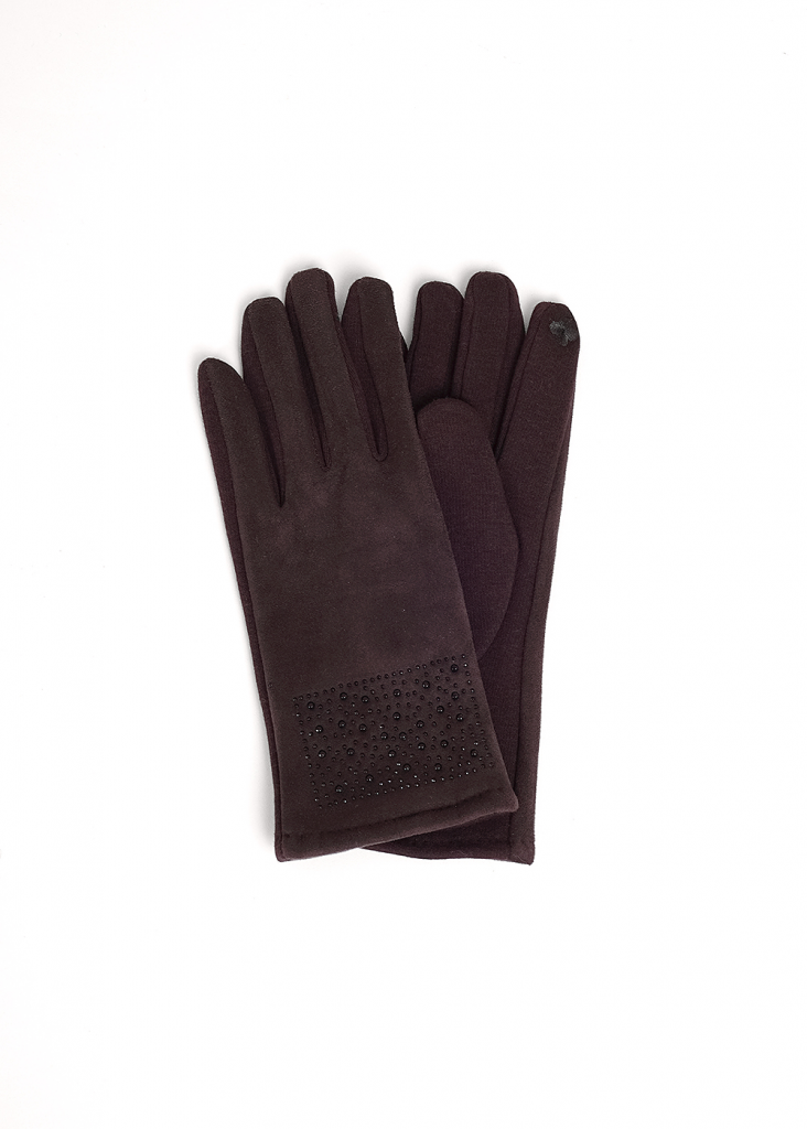 Элегантные женские перчатки из искусственной замши. На большом и указательном пальцах вышивка нитью для сенсорных экранов. Аксессуар достойный настоящих леди.
