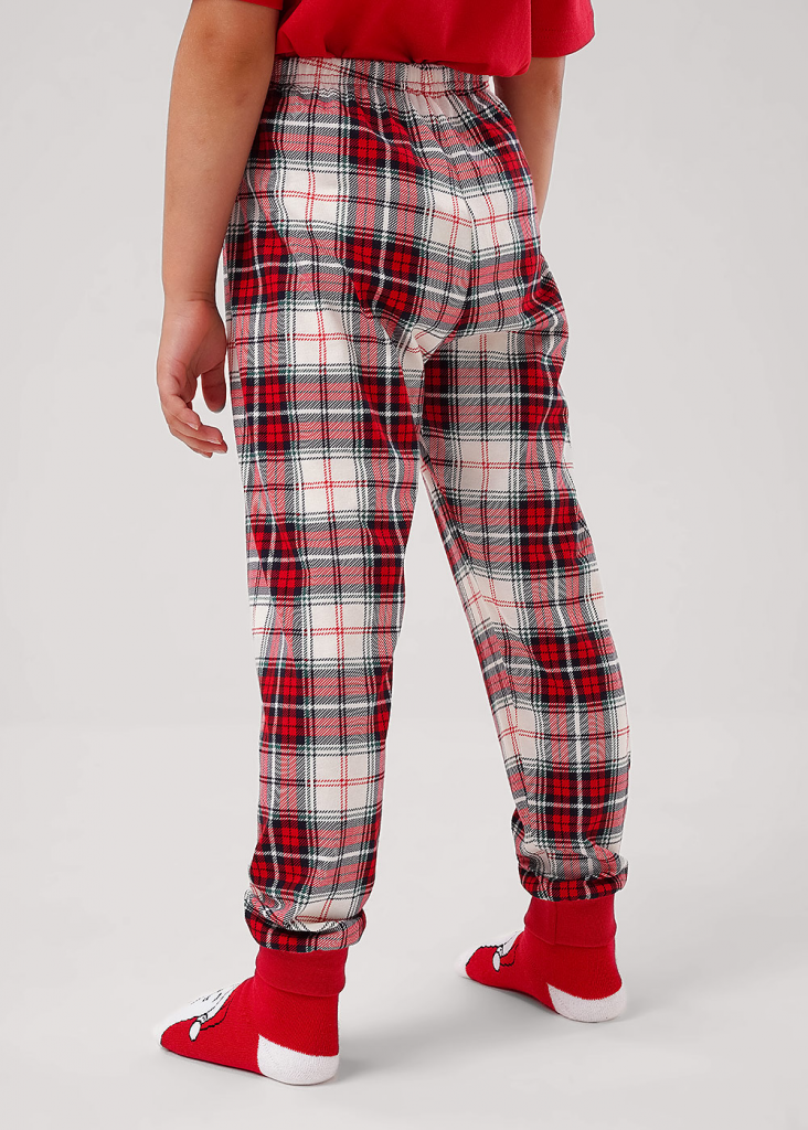 Новогодняя хлопковая пижама из футболки и брюк. Горловина , манжеты по низу брюк из эластичного полотна. Футболка свободного кроя, тематический принт по переду. Брюки среднего объема, эластичный пояс обеспечит комфорт и идеальную посадку.