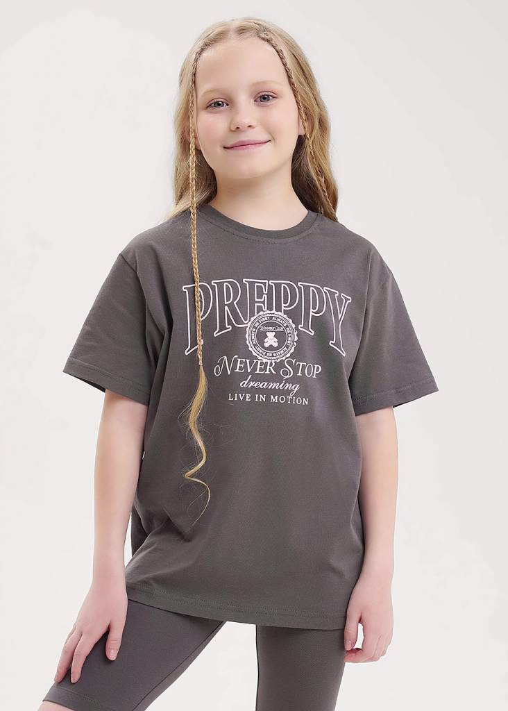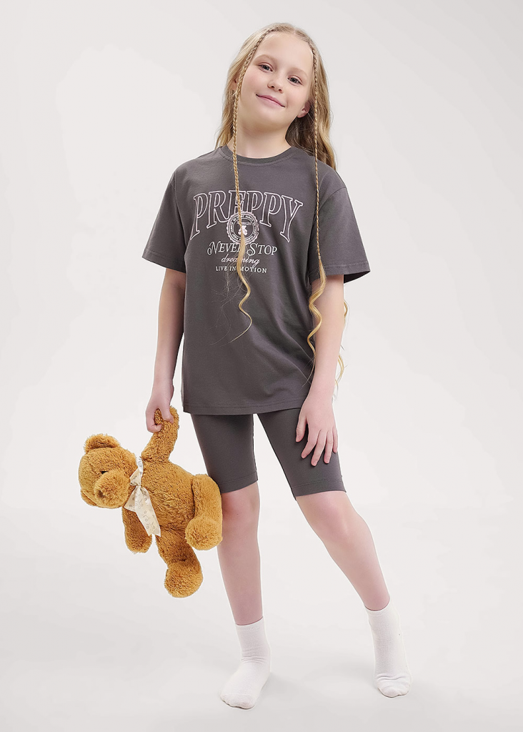 Комплект домашней пижамы из велосипедок и футболки. Футболка свободного кроя дополнена эластичной горловиной и стильным принтом. Велосипедки дополнены эластичным поясом для большего удобства.