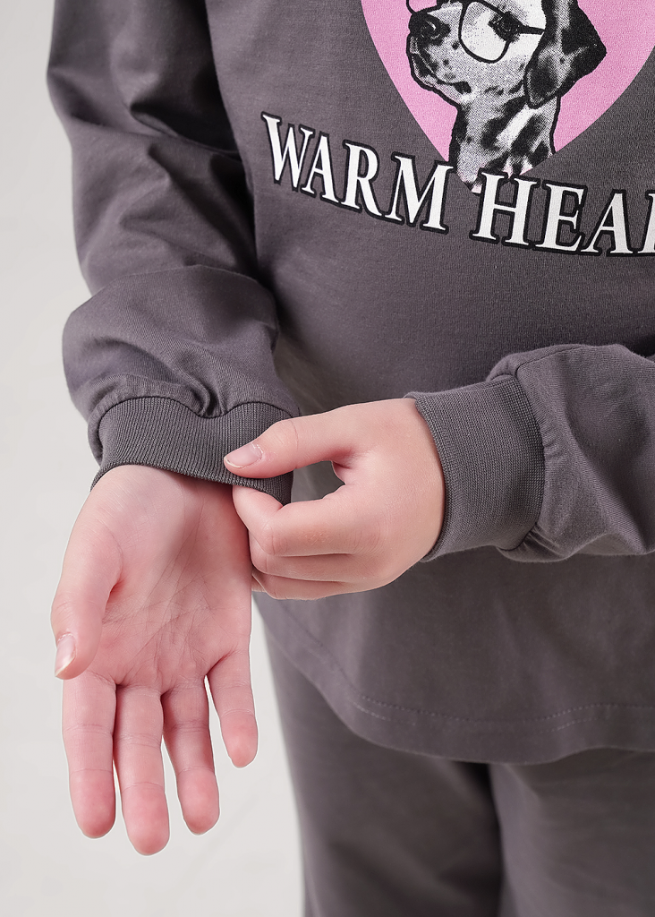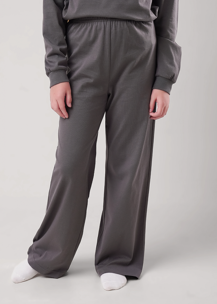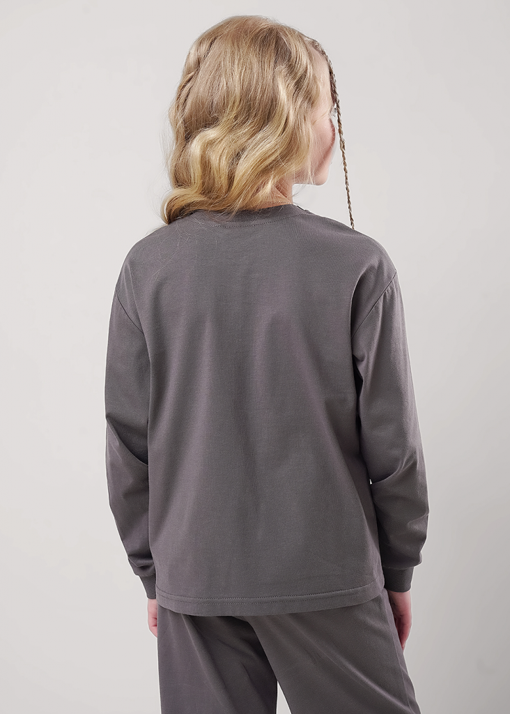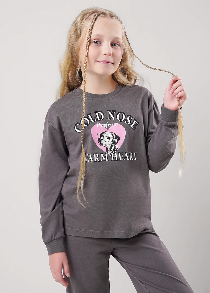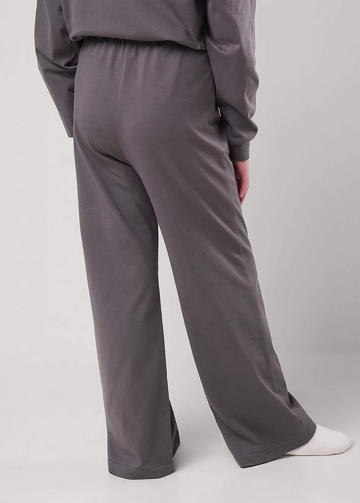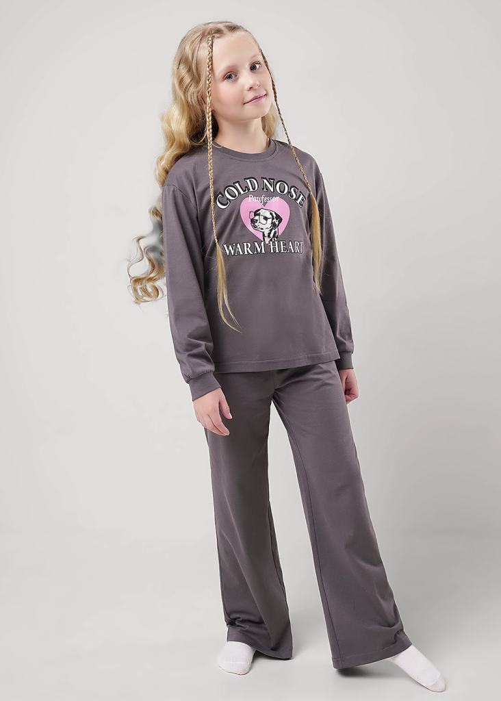 Комплект хлопковой пижамы из джемпера и брюк. Джемпер свободного кроя дополнен эластичной горловиной и манжетами. Брюки среднего объема, эластичный пояс обеспечит комфорт и идеальную посадку.