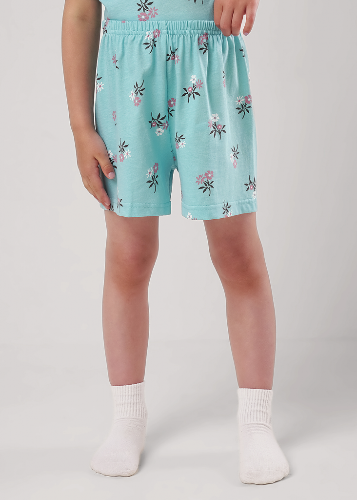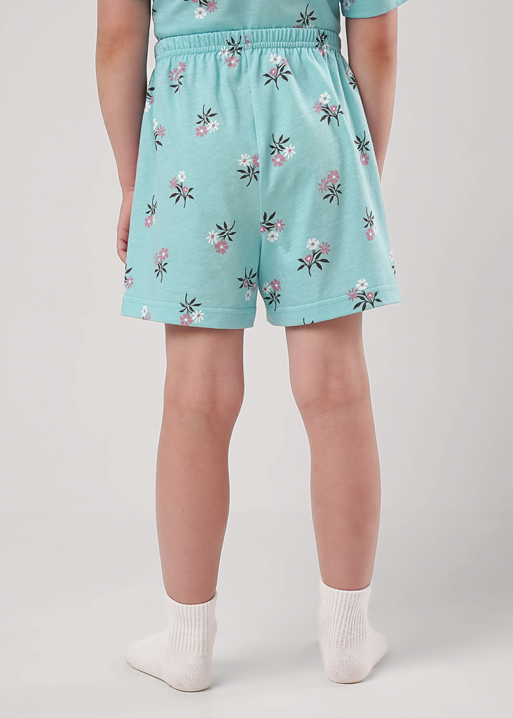 Комплект хлопковой пижамы из футболки и шорт. Футболка свободного кроя дополнена эластичной горловиной и стильным принтом. Шорты среднего объема, эластичный пояс обеспечит комфорт и идеальную посадку.