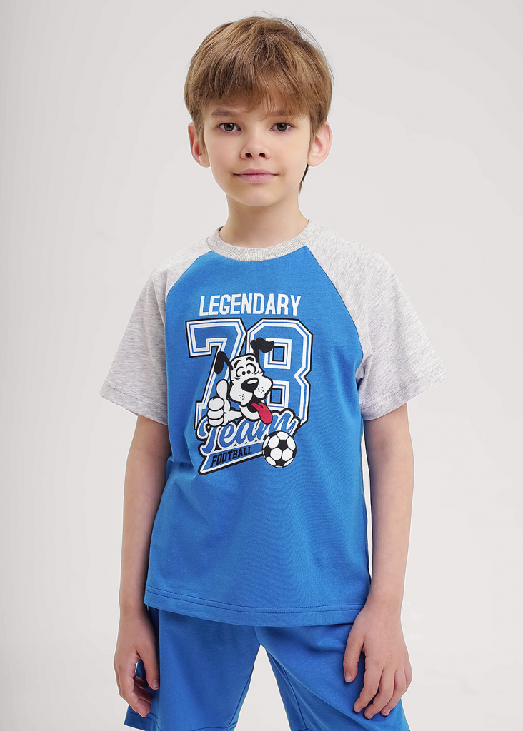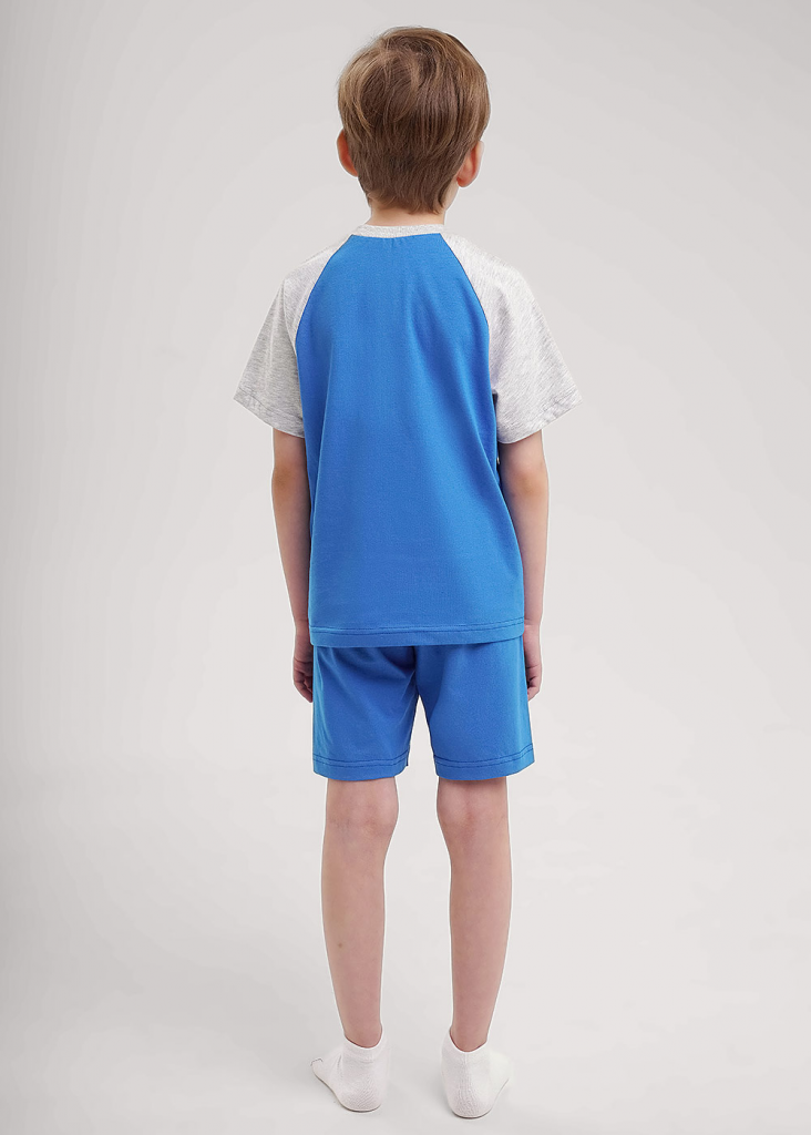 Комплект хлопковой пижамы из футболки и шорт. Футболка свободного кроя дополнена эластичной горловиной и стильным принтом. Шорты среднего объема, эластичный пояс обеспечит комфорт и идеальную посадку.