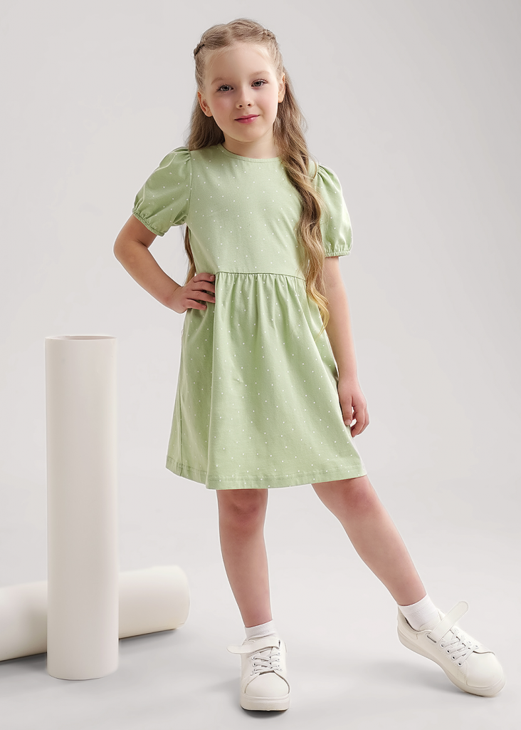 CLE Платье дев. 757145кдн, св.зелёный/молочный