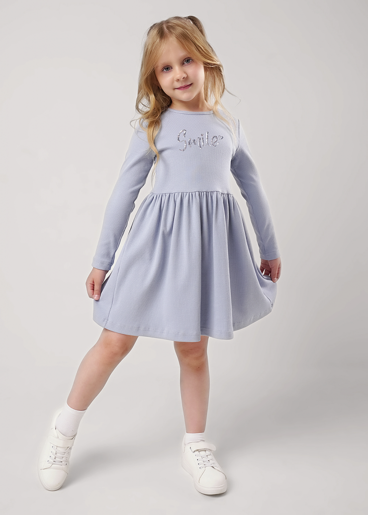 Милое платье из трикотажа в рубчик идеально подойдёт для создания классного образа и отличного настроения! Модель с длинным рукавом и пышной юбкой дополнена вышивкой с пайетками. Комфортная посадка по фигуре, актуальный цвет и качественные материалы.
