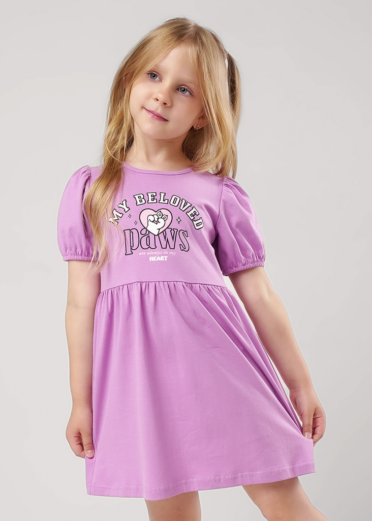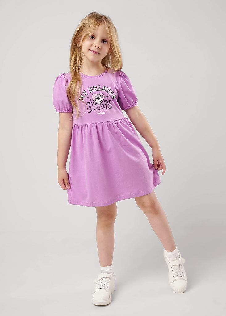 Милое романтичное платье из хлопкового трикотажа- то, что нужно для создания классного повседневного образа! Модель с пышной юбкой и объёмными рукавами- "фонариками" дополнена стильным ярким принтом!