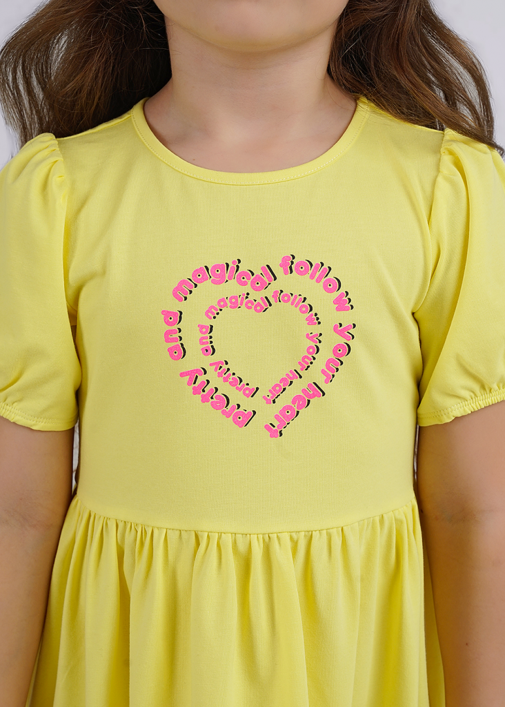Стильное платье для девочки из эластичного хлопка. Романтичные рукава фонарики, присборенная юбка и яркий принт спереди - идеально для повседневных летних образов!