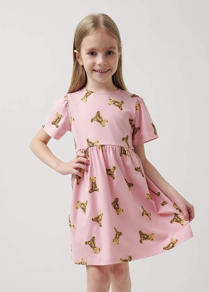 Незатейливое платье для принцессы из набивного хлопка. Заниженная талия, юбка на сборке, романтичный рукав фанарик на резинке. Чувствуй себя стильно и комфортно каждый день!