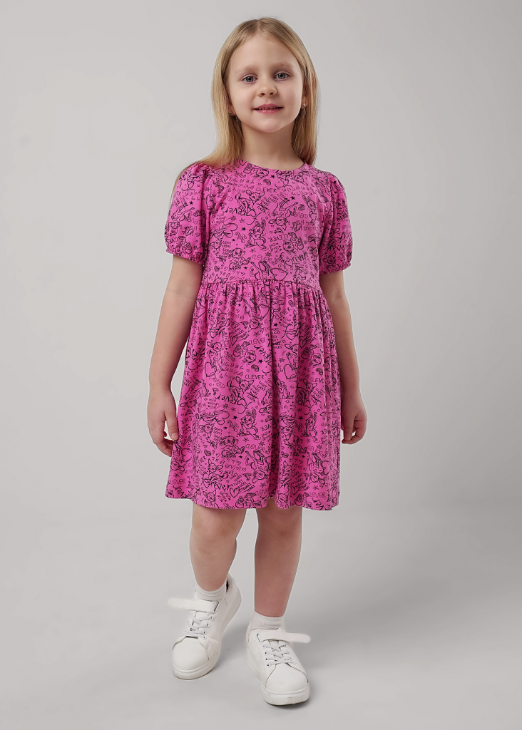 Стильное и яркое платье для девочки с воздушными рукавами- фонариками из эластичного хлопка идеально подойдет для создания милых повседневных образов!