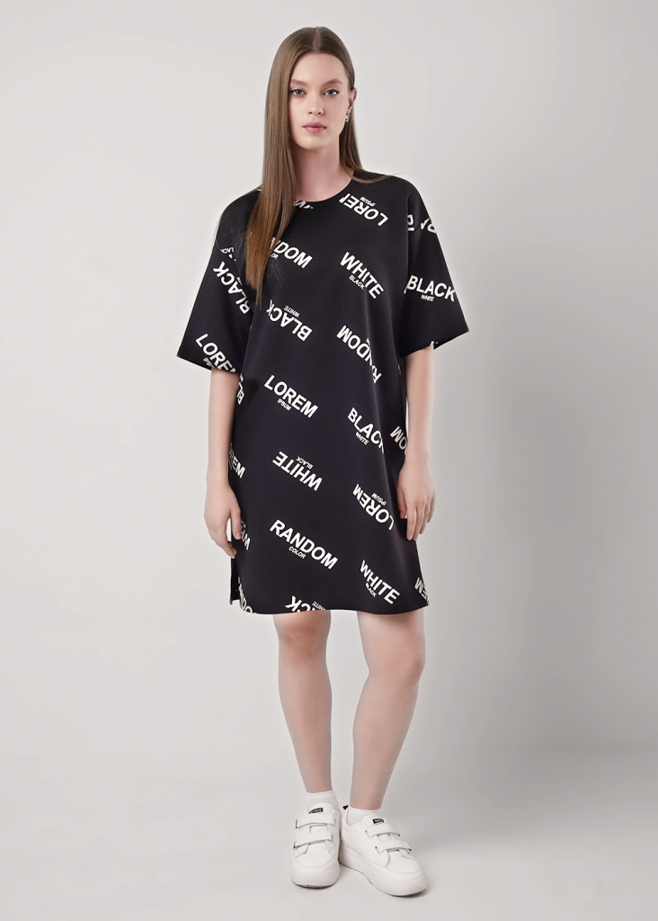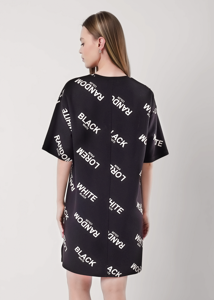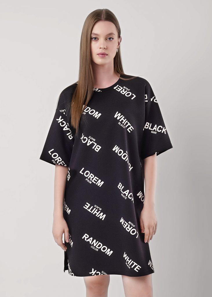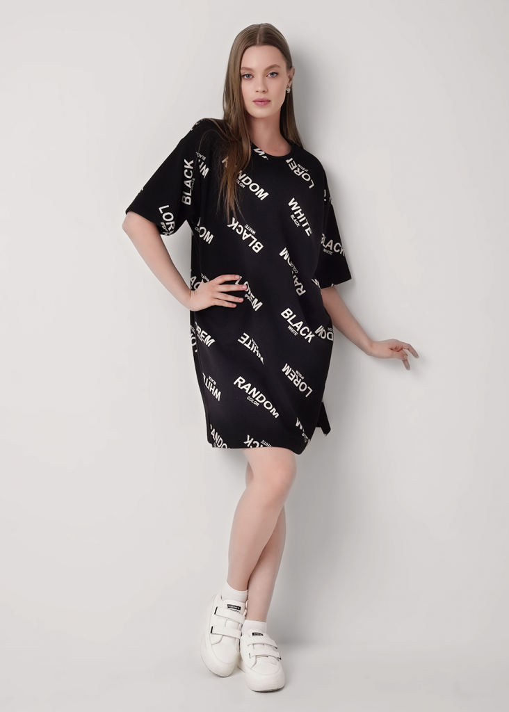 Платье прямого силуэта из трикотажного полотна, длиной ниже колена. Короткий втачной рукав. Округлая горловина с обтачкой. По бокам разрезы.