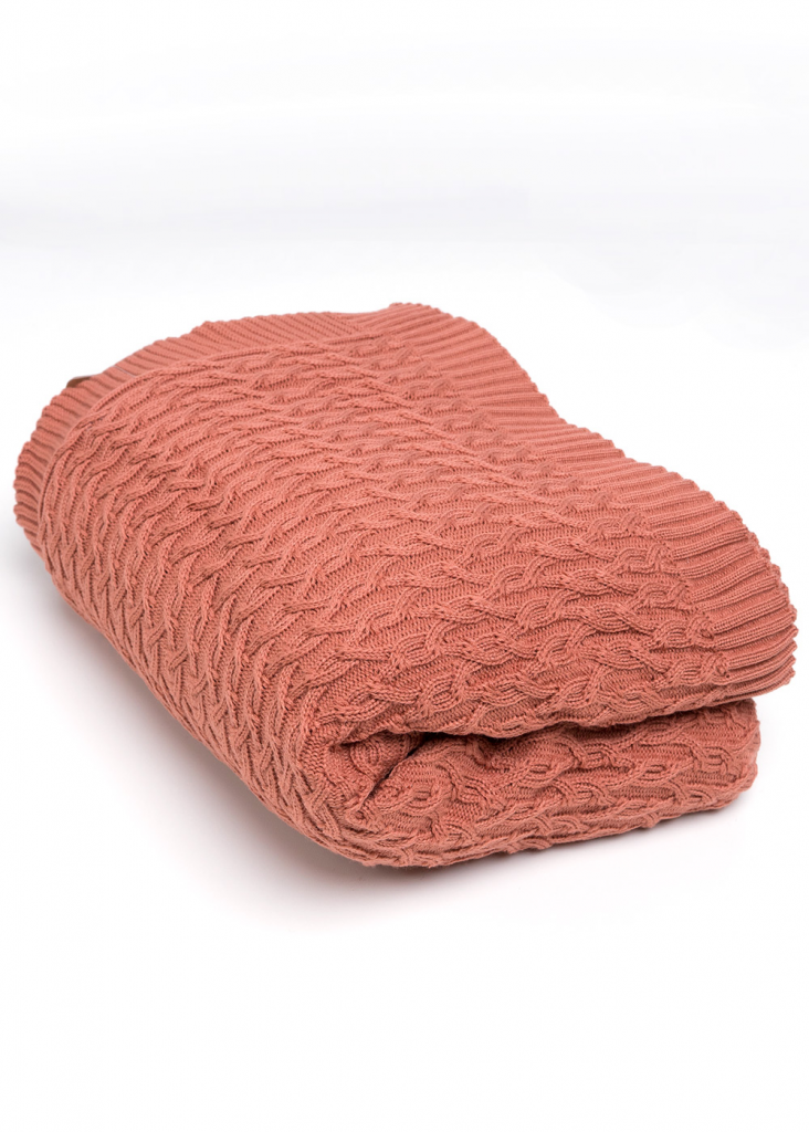 Вязаный плед с фактурным рисунком