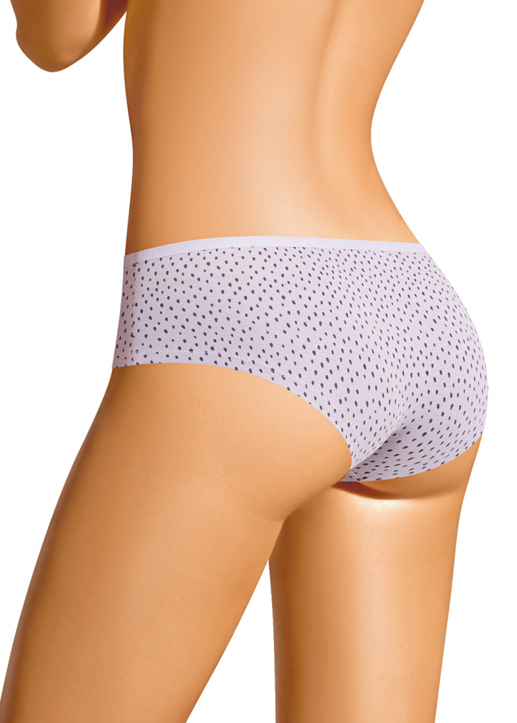 Трусы шорты женские из эластичного хлопкового полотна. Обработка краев по талии окантовочная резинка, по ноге - подгибка. По переду принт.