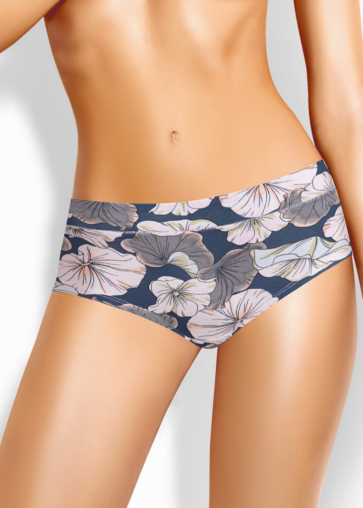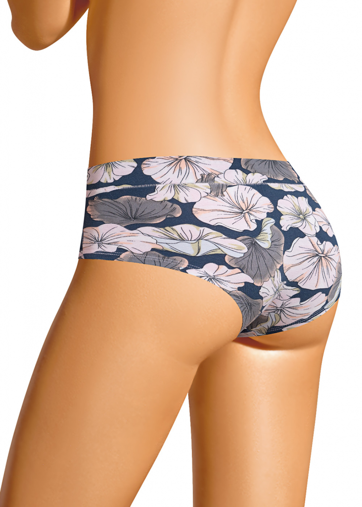 Трусы шорты женские из эластичного хлопкового полотна. Обработка краев по талии - обтачка с внутренней резинкой, обработка "зубы" по талии, по ноге - подгибка.