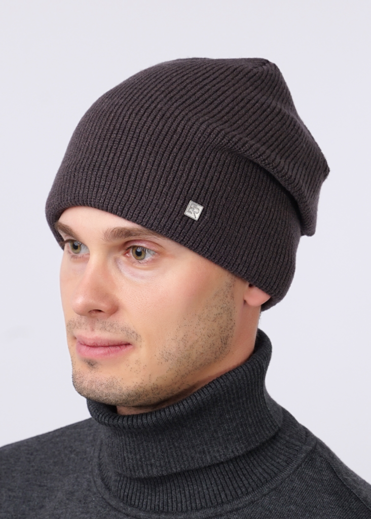Мужская шапка- колпак, выполнена рельефным ластичным переплетением, декорирована кожаной нашивкой логотип, и в затылочной части защипом с кожаной застежкой- "клевант". Утепление- флис по всей голове. Идеально подойдёт для холодной осени- зимы.
