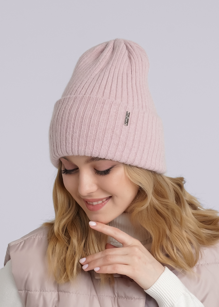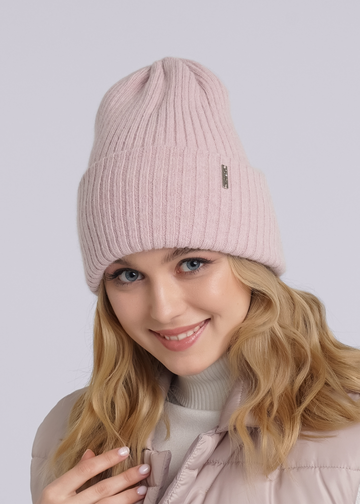 Женская двойная шапка с отворотом, декорирована стильной имиджевой нашивкой. Идеальна для зимы.