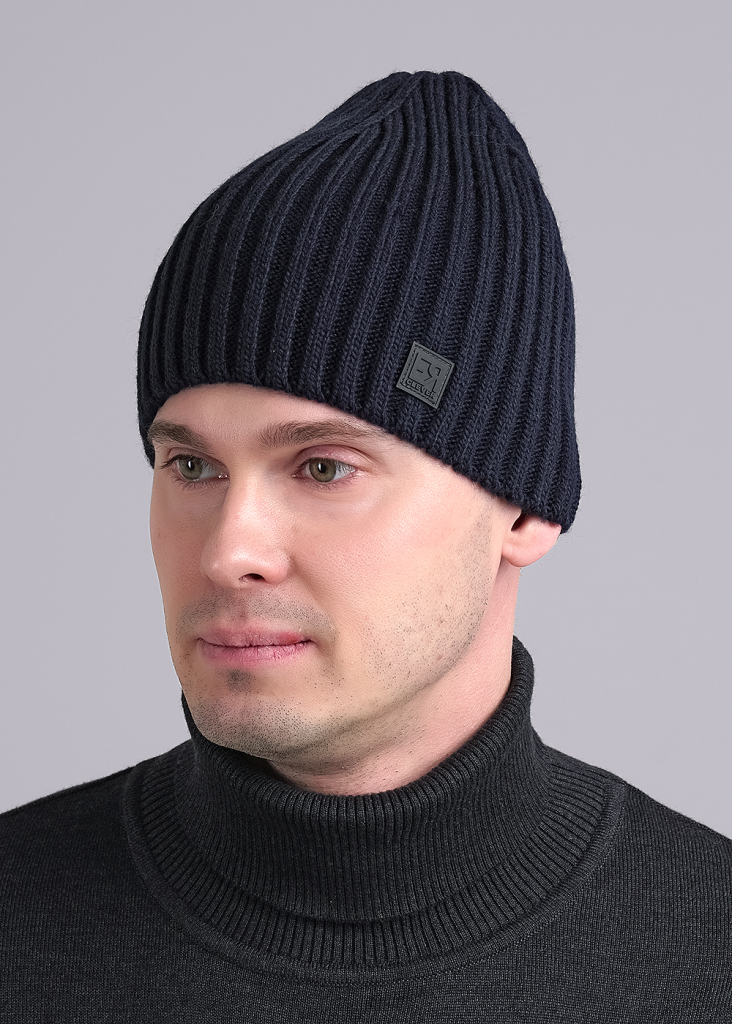 Шапка мужская, декорирована стильной нашивкой. Идеально подойдёт для холодной осени, тёплой зимы.