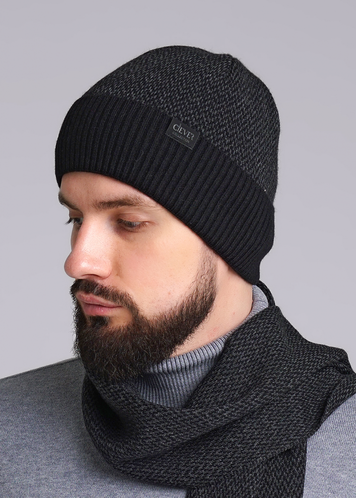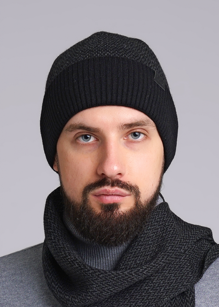 Мужская шапка с отворотом жаккардового переплетения, декорирована нашивкой логотип. Утепление флисом по всей голове. Идеально подойдёт для холодной зимы. Предлагать в комплекте с шарфом 433850аш
