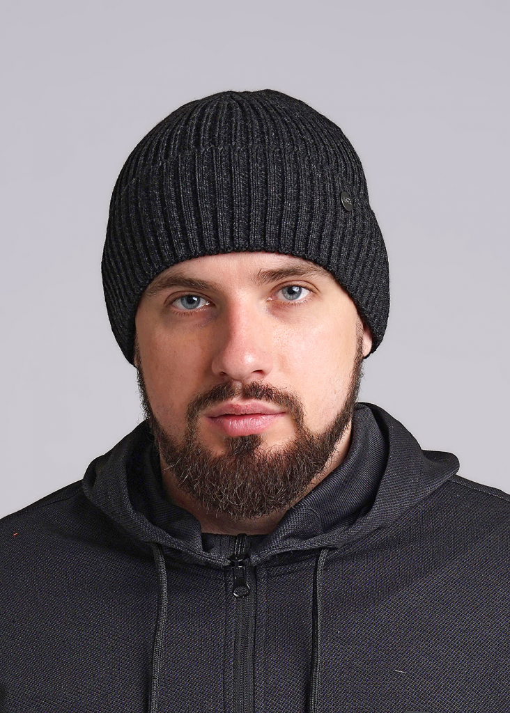 Шапка мужская с отворотом на флисе, декорирована металлической нашивкой с гравировкой